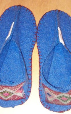 Comfy slippers A warm and comfy pair of slippers with an ethnical touch given by a Peruvian decoration band