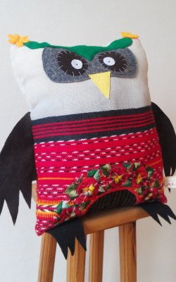 Need a unique, personalised and original present? As an example, here is an owl with the magic powers of Guatemala’s Maya peoples. It is made with a kid’s huipil (shirt) turn up-side-down and some fabric and felt leftovers.