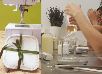 Nous vous proposons un atelier très complet pour coudre des lingettes démaquillantes réutilisables et apprendre à fabriquer votre nettoyant démaquillant visage à base d’hydrolat et d’huile végétale BIO ainsi que votre gommage visage au sucre. Vous repartez avec vos 2 produits et vos 4-6 lingettes lavables en bambou eco , notre savoir-faire et nos conseils judicieux pour faire la révolution dans votre salle de bains !