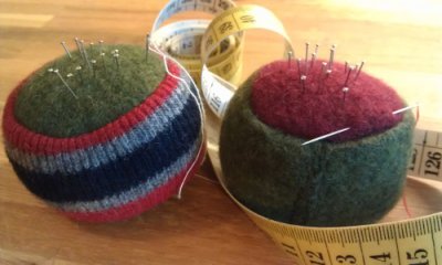 Coussins à épingles Création rapide et très utile : ce sont des restes de pulls feutrinés devenus des coussins à épingles en 15 minutes.