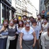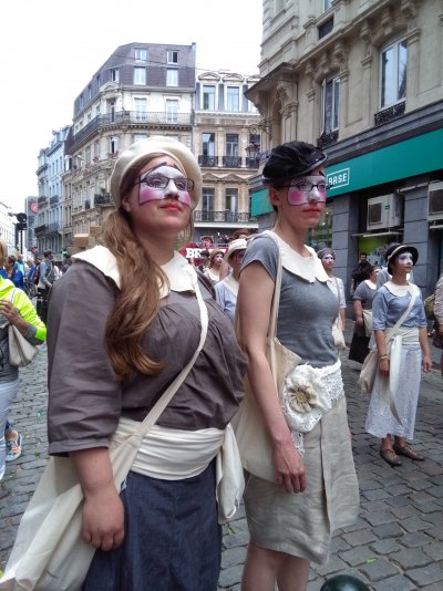 Notre atelier a accueilli le travail de création des costumes pour la zinnode de Saint-Gilles (les « Permutants »). De janvier à mai j’ai animé un atelier hebdomadaire ouvert et participatif à la Transformathèque pour créer les costumes des 80 participants de ce groupe qui ont défilé à la Zinneke Parade devant des milliers de personnes le 21 mai.